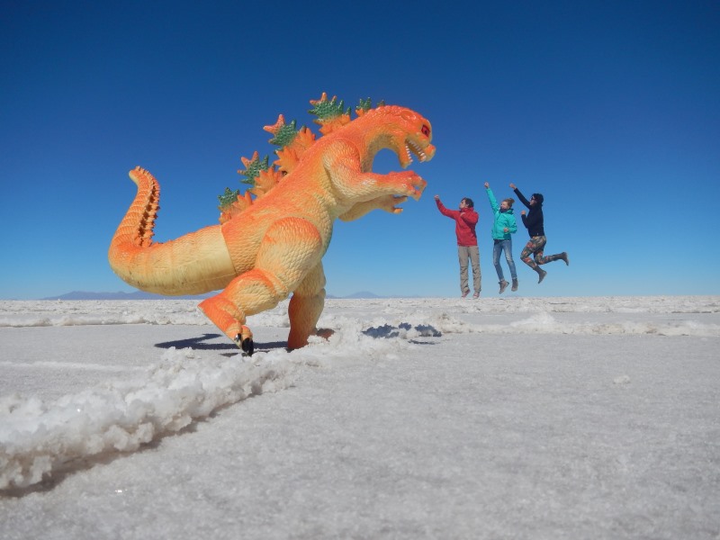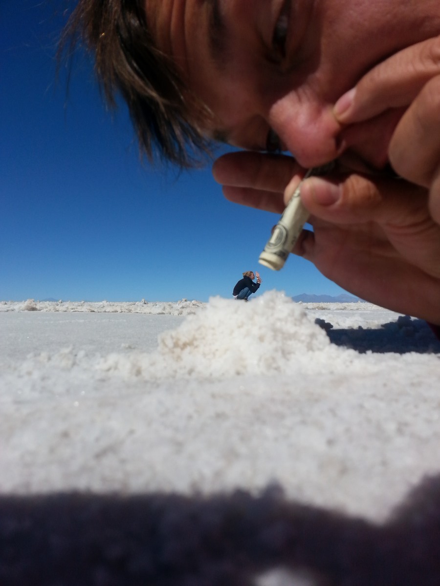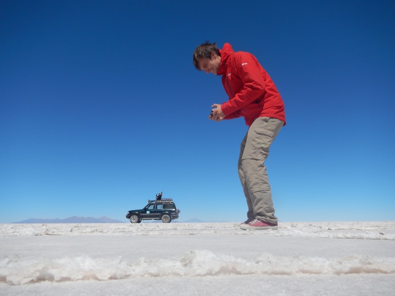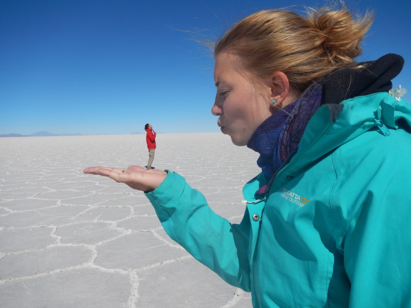 Den krönenden Abschluss hatten wir dann mitten in der Salzwüste, in der wir dann versucht haben auf verschiedenen Bildern eine optische Täuschung zu erschaffen