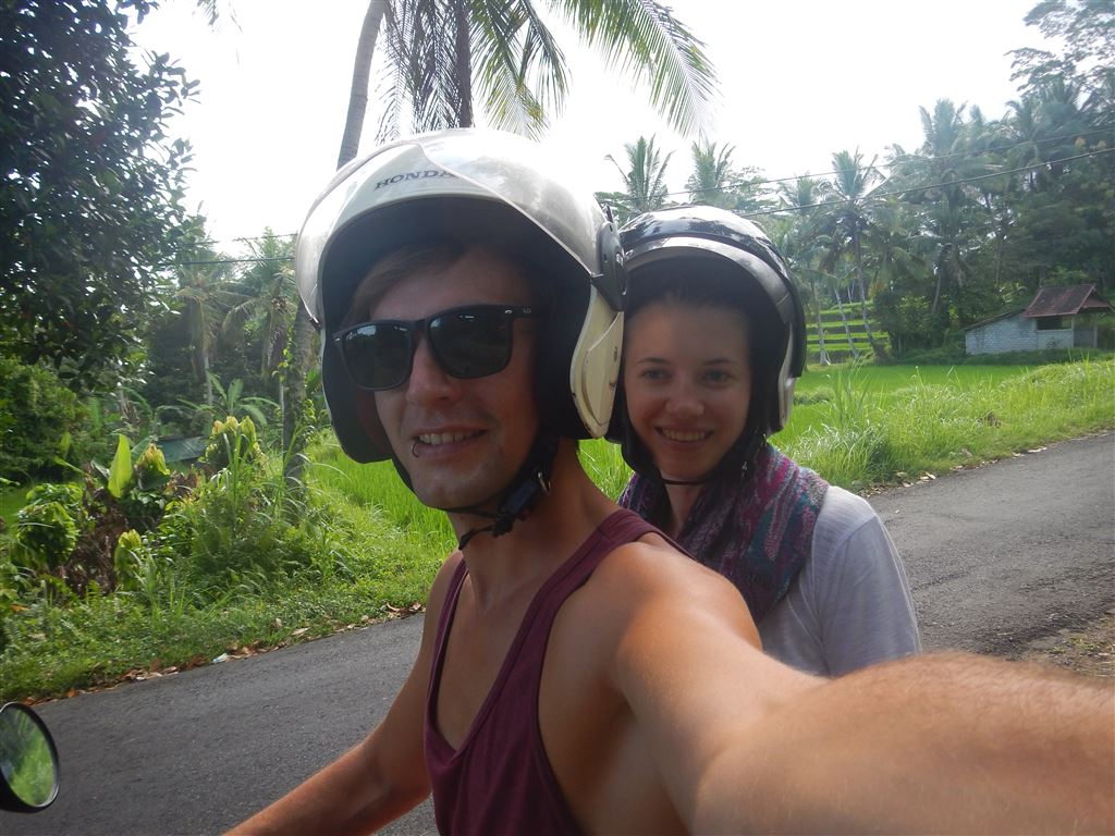 Später kam dann der Besitzer an und entschuldigte sich bei uns. Um von der abgelegenen Unterkunft auch etwas unternehmen zu können, buchten wir bei ihm einen Roller, damit wir in die nächstgelegene Stadt Ubud fahren konnten, da wir ja immer noch nichts anständiges zu Essen gefunden hatten.