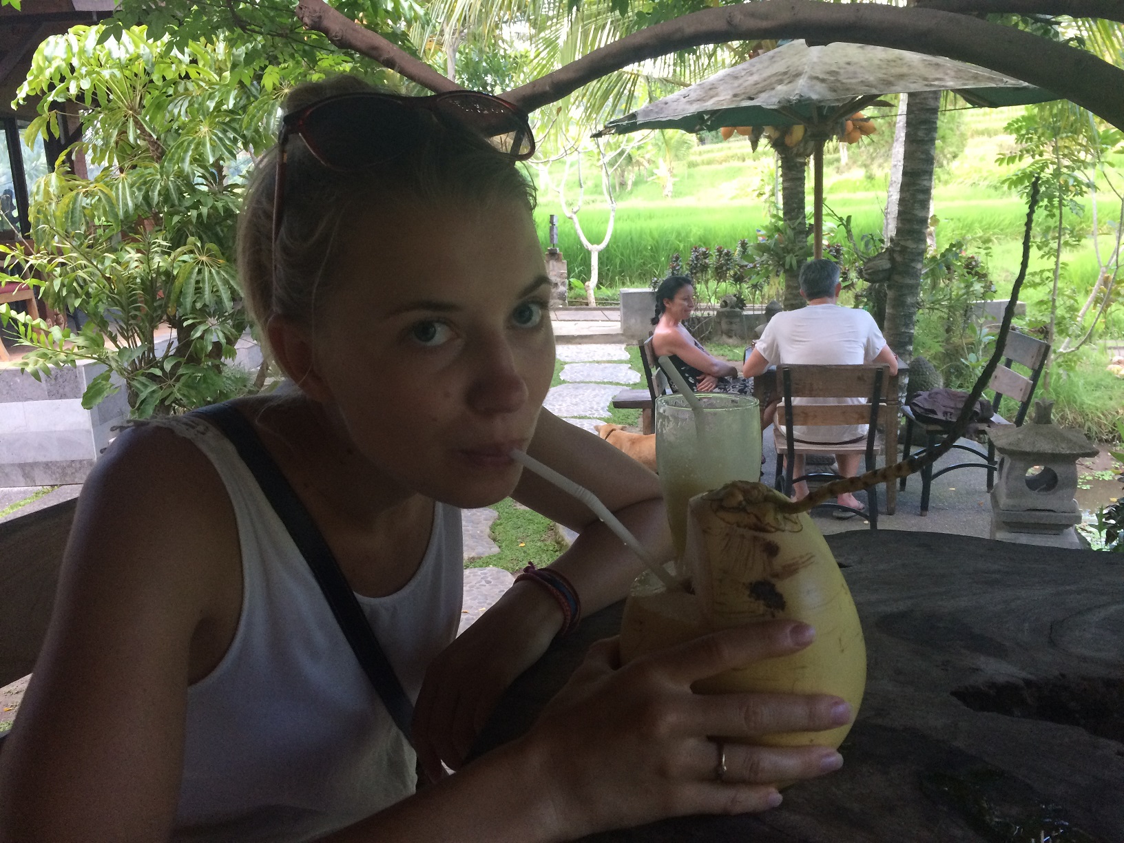 Direkt in den Reisfeldern war noch ein goldiges kleines Restaurant, bei dem wir noch eine kleine Stärkung zu uns nahmen: