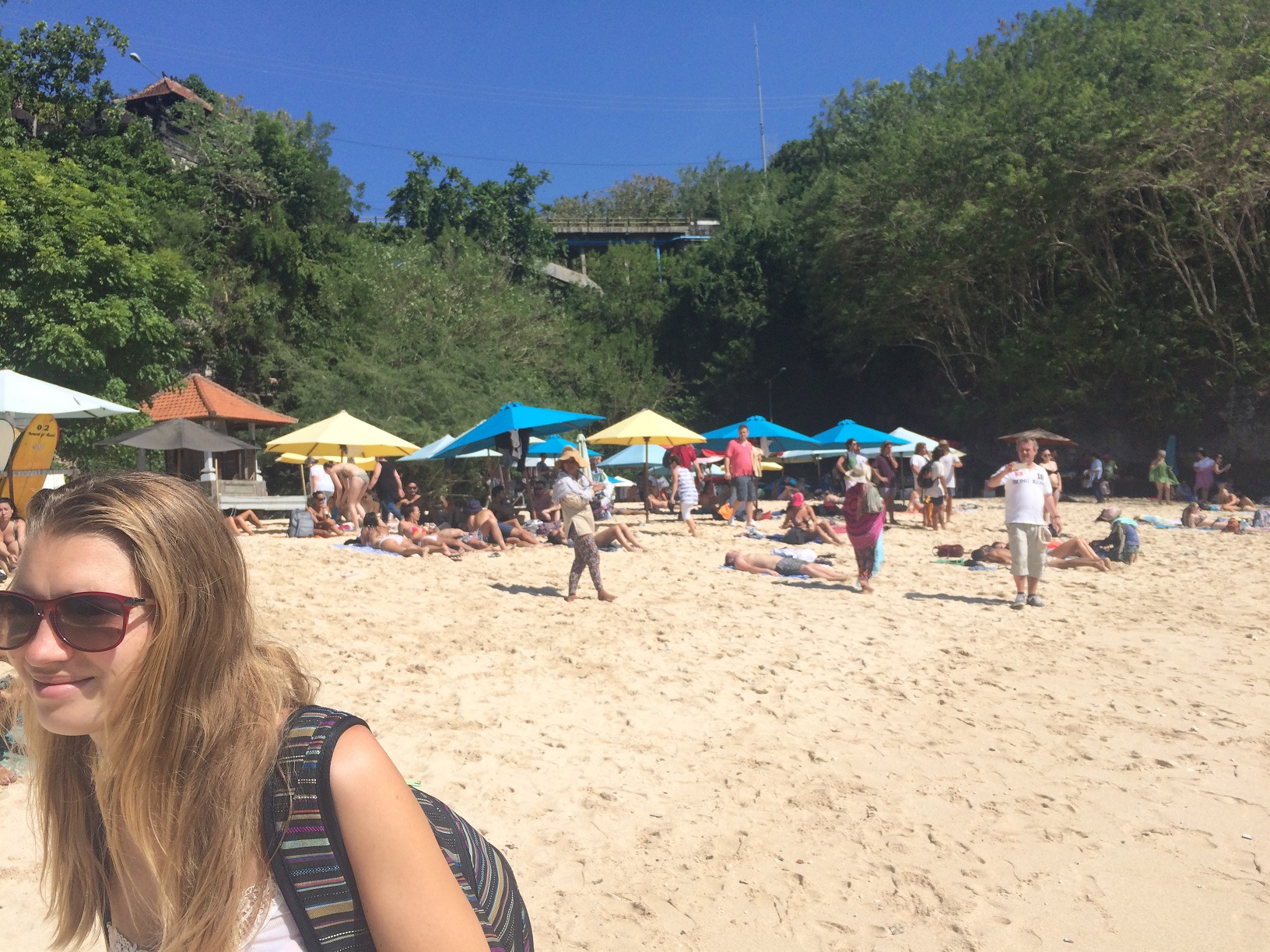 Direkt nach diesem Strand fuhren wir ca. 2 Kilometer weiter zum Padang Padang Beach. Hier musste man sogar Eintritt zahlen, da der einzige Zugang zum Strand an einem Tempel vorbei ging. Trotzdem waren an diesem Strand echt wieder unglaublich viele Menschen