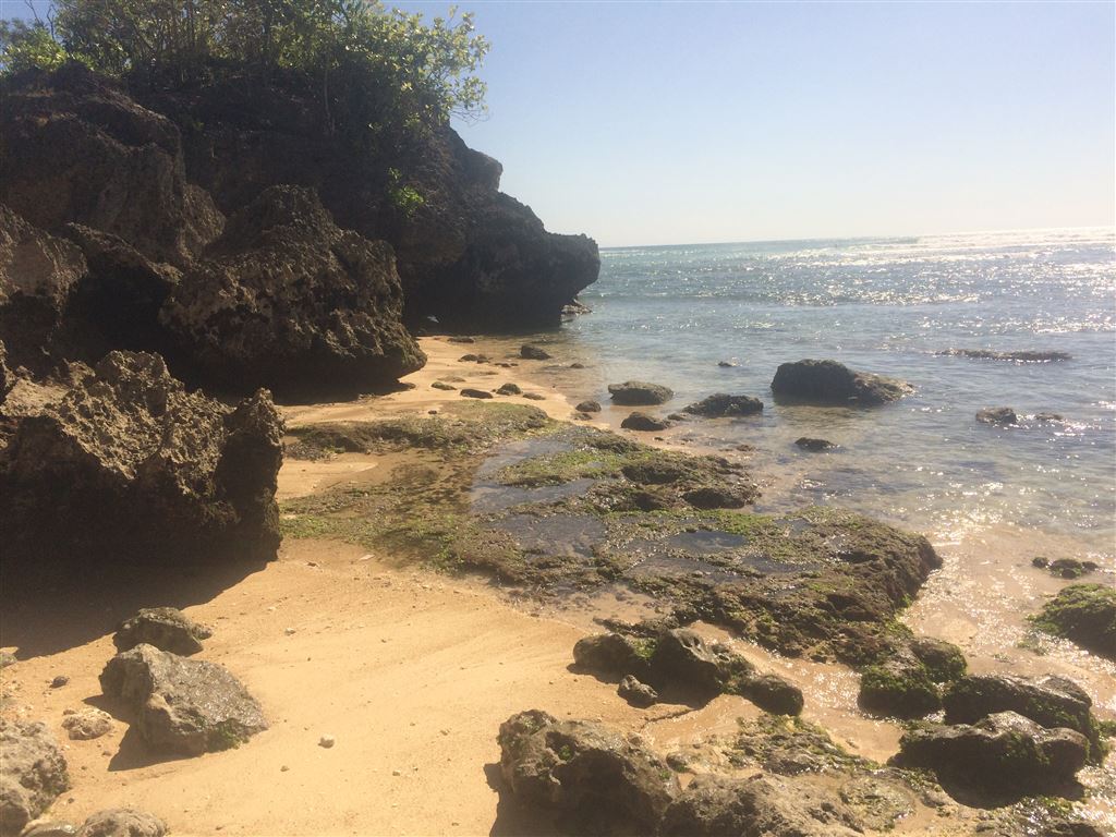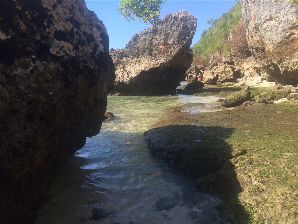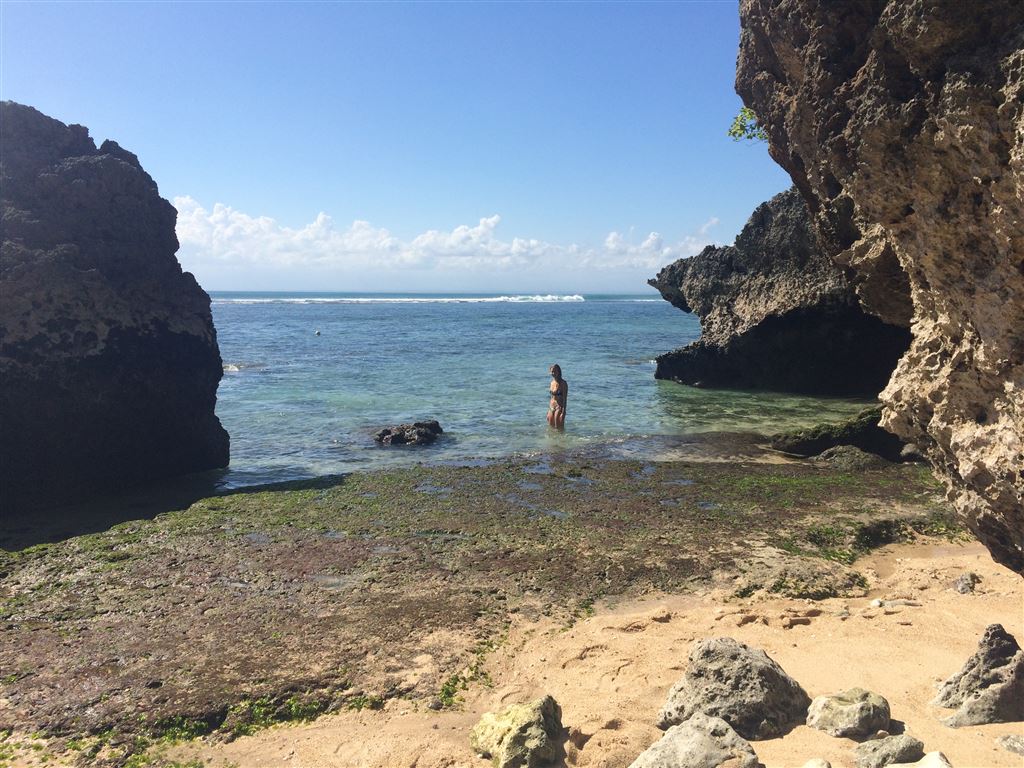 Wenn man allerdings ein bisschen am Strand durch die Felsen durch spaziert, findet man trotzdem eine abgelegene Stelle, die man dann fast für sich alleine hat: