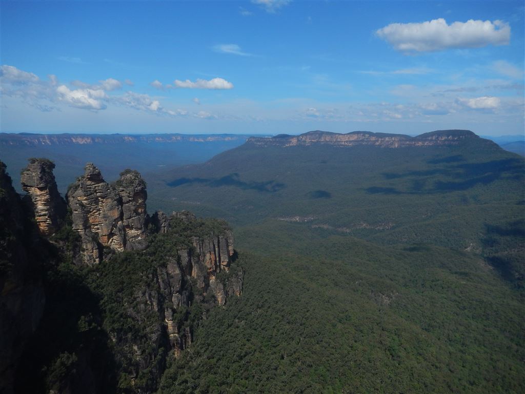 In den Blue Mountains unternahmen wir mehrere Wanderungen. Die erste ging zu den 3 Sisters, eine Felsformation, die (mit sehr viel Fantasie) drei Personen ähnelt: