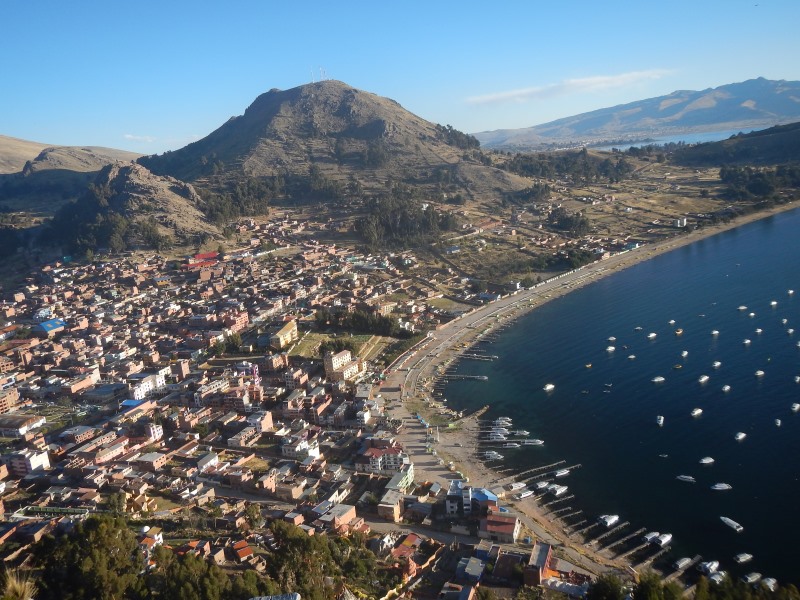 Vom nächstgelegenen Berg Cerro Calvario hatte man einen wirklich schönen Blick auf die Stadt und den Titicacasee:
