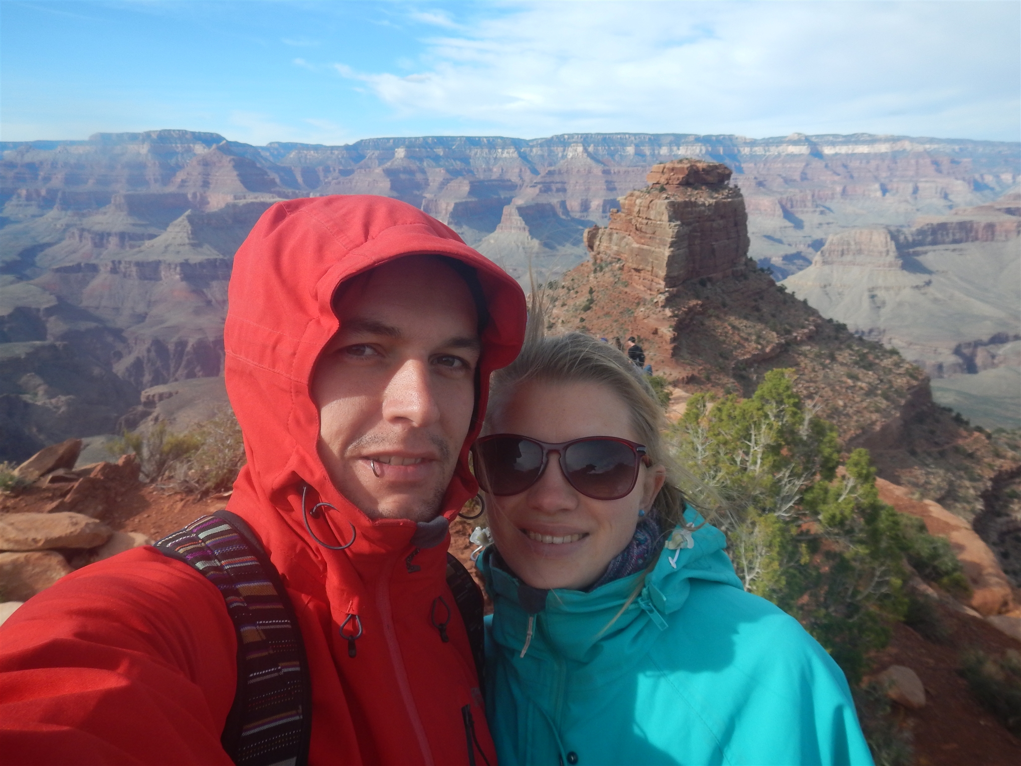 Am offiziellen Gran Canyon Park sind wir dann einen Trail in den Canyon hinein gewandert. Zeitlich gesehen hatten wir nur einen halben Tag zur Verfügung, deswegen konnten wir nicht komplett herunter wandern. Trotzdem war es eine wirklich schöne Wanderung, mit wieder mal grandiosen Ausblicken: