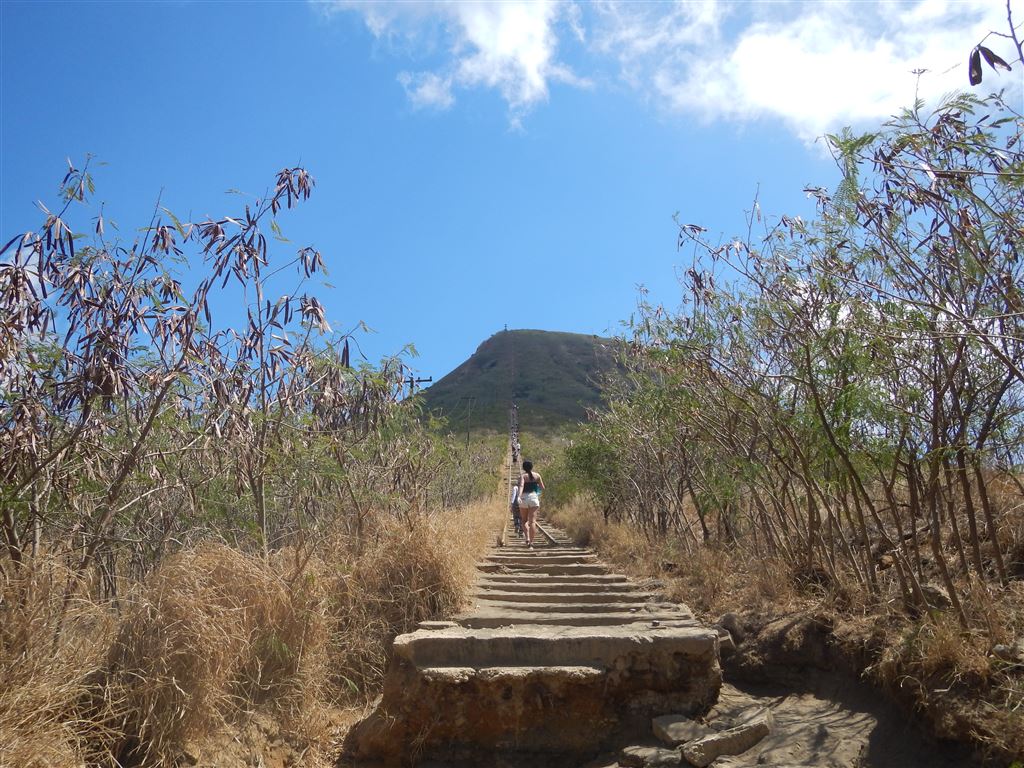 Der Krater liegt eigentlich direkt am Rand der Stadt Honolulu. Es ist eigentlich auch die Hauptattraktion von O’ahu und man kann über Treppen an den linken oberen Rand des Kraters wandern: