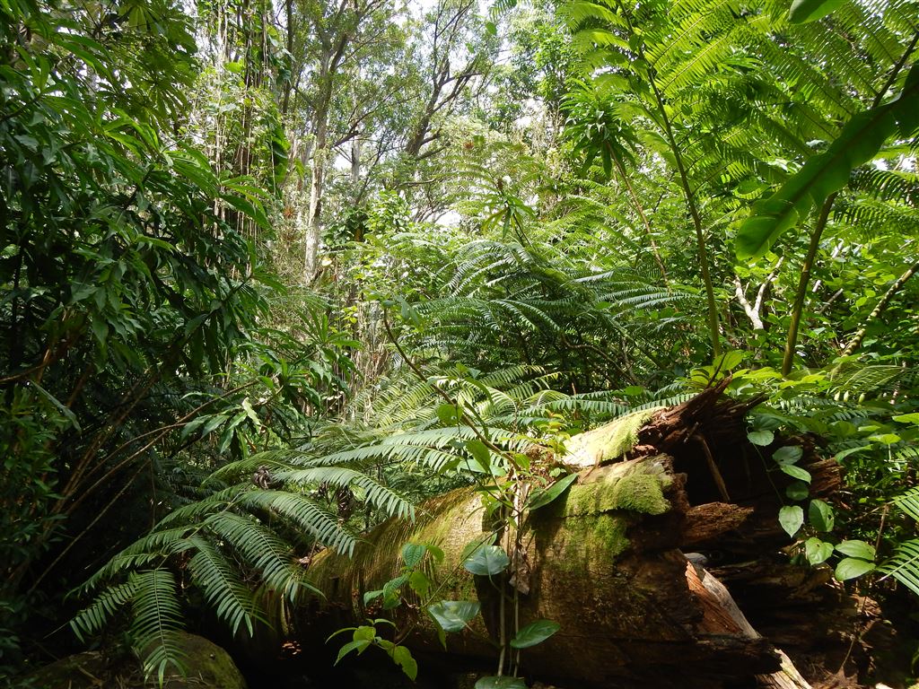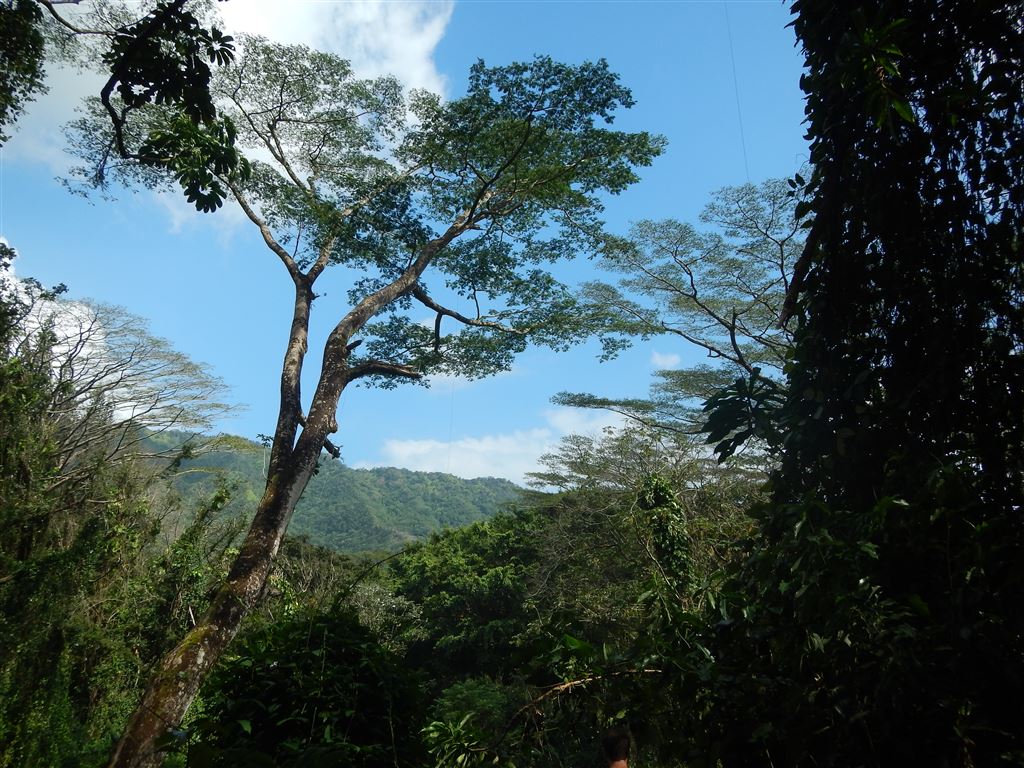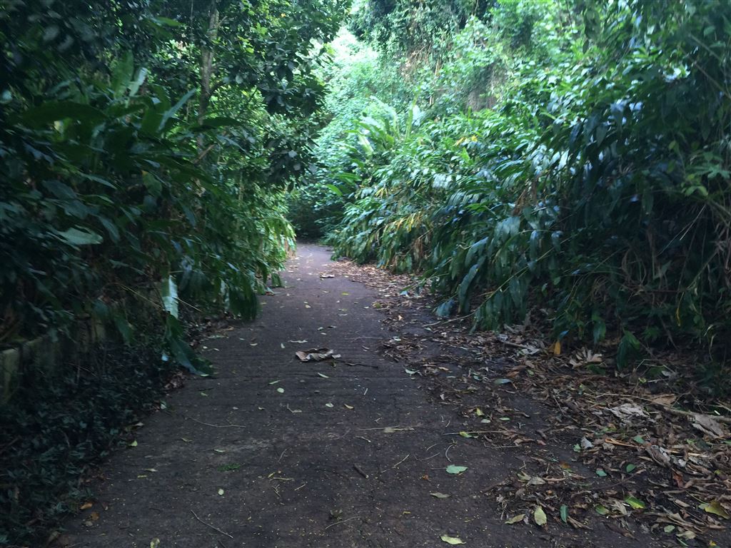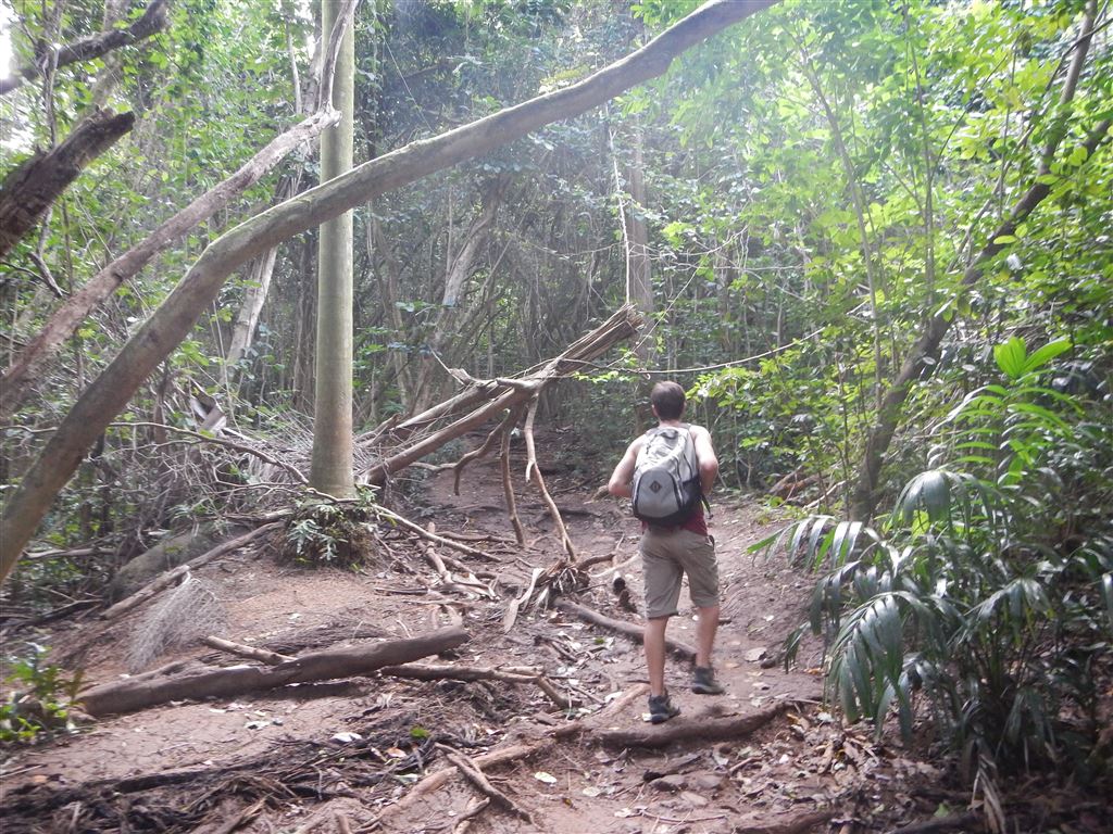 Der Wanderpfad beginnt an einem Golfplatz-Parkplatz und geht dann erst mal durch den Regenwald: