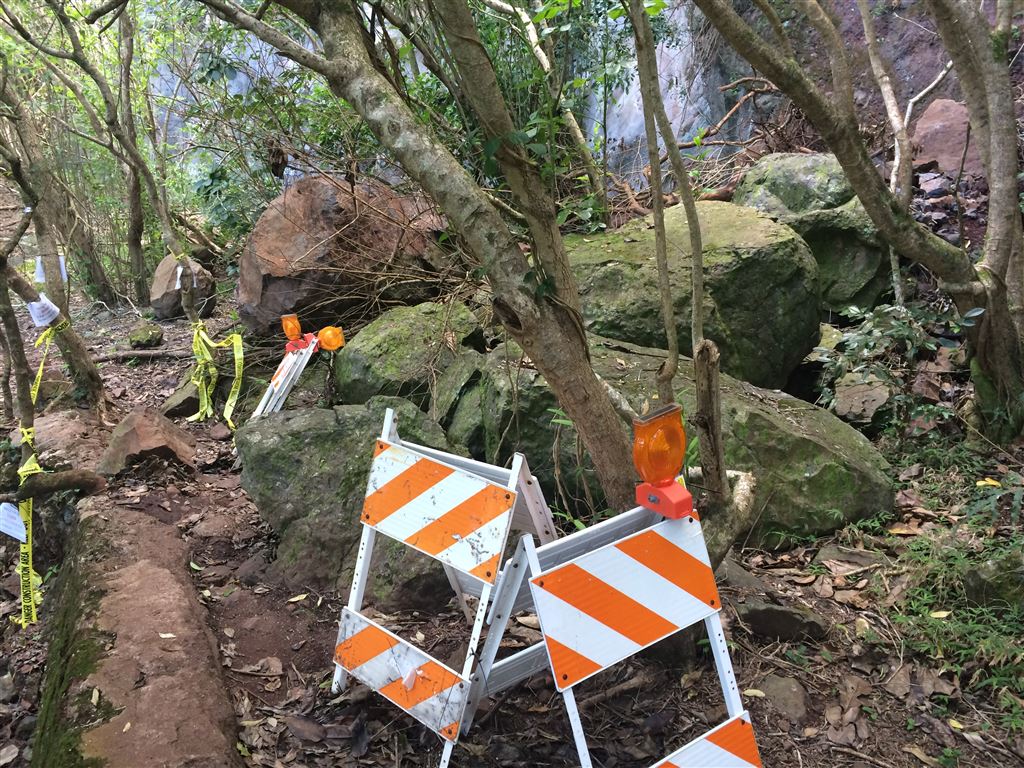 Nach langem hin und herüberlegen und Beratschlagungen mit einem anderen amerikanischen Pärchen, das ebenfalls die Wanderung machen wollte und verdutzt vor der Absperrung stand, entschieden wir uns dazu alle Warnungen zu ignorieren und gemeinsam auf Wasserfall Suche zu gehen:-)