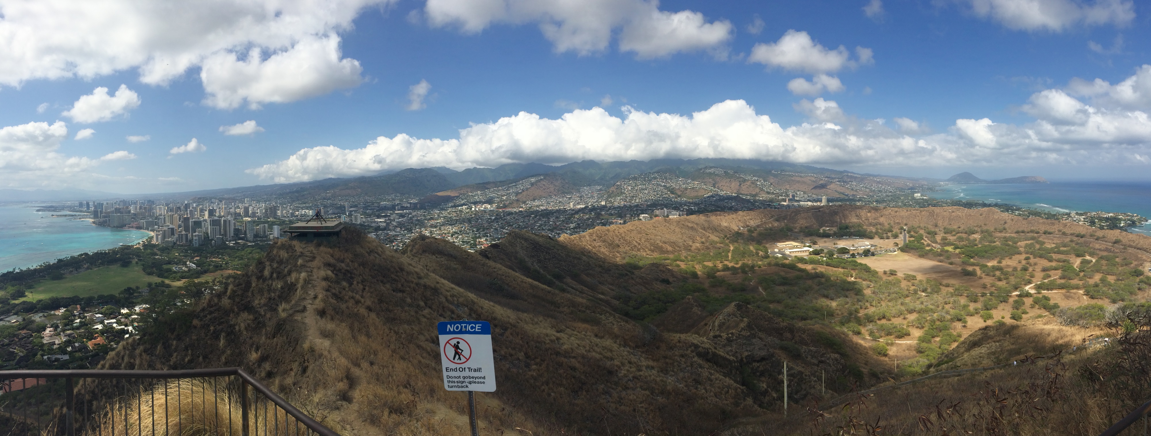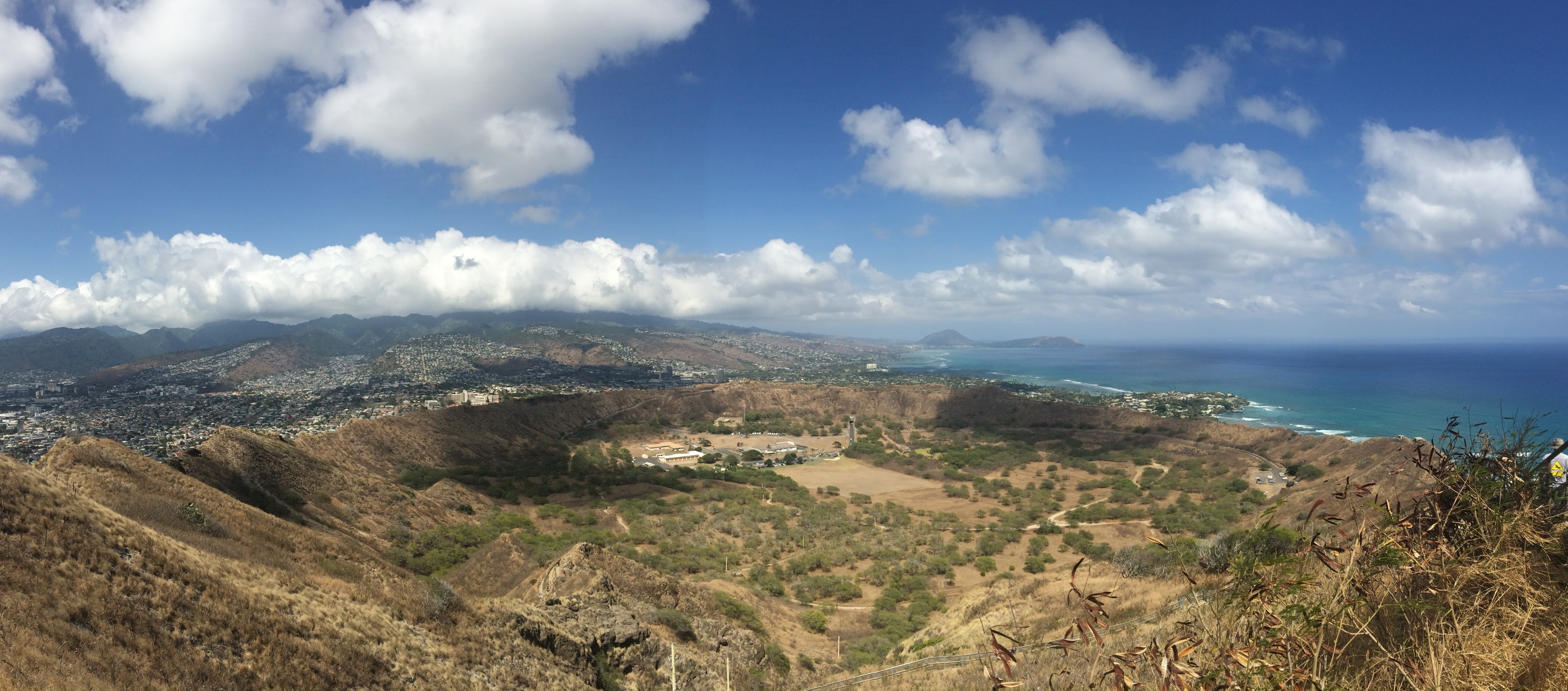 Die Ausblicke waren schon schön. Trotzdem haben wir natürlich lieber schöne Ausblicke auf die Natur und nicht auf die Skyline von Honolulu und der Krater selbst war schwer zu erkennen: