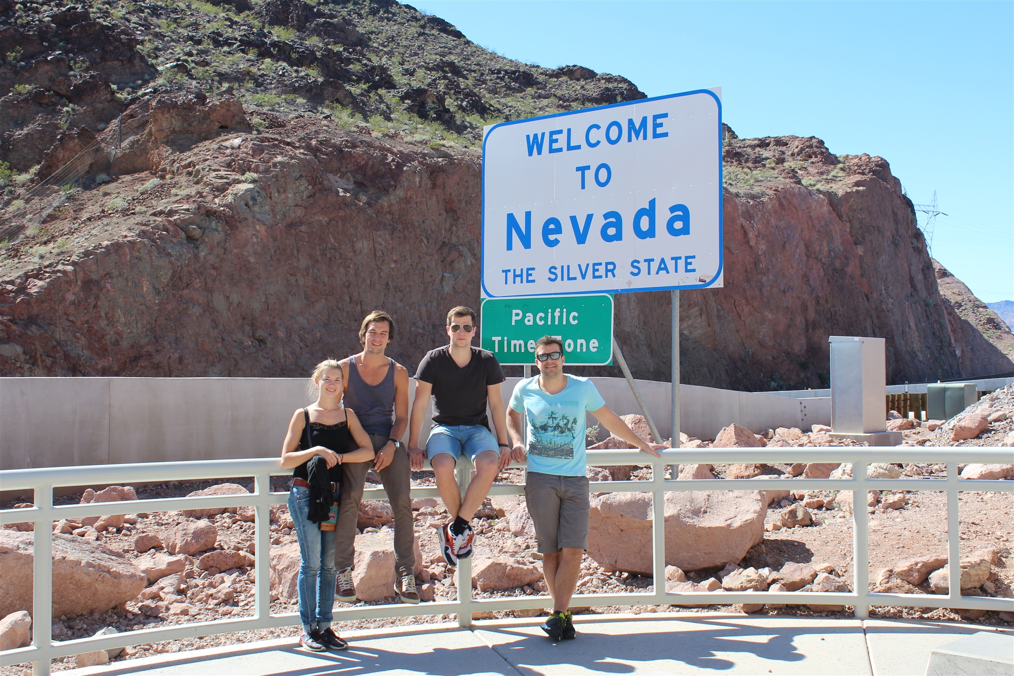 Er liegt direkt an der Grenze zwischen Arizona und Nevada, also konnten wir schön posen;-)