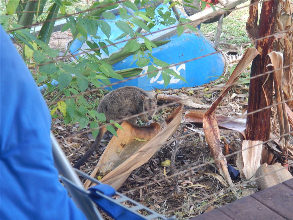 Manchmal hatten wir auch Glück und konnten ein Wallaby ertappen, wie es sich Futter von Pauls Kompost klaute.