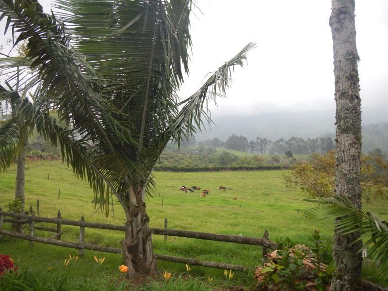 Ab und zu bilden Palmen den Kontrast, der einen erinnern lässt, dass man sich mitten in Kolumbien befindet. Unser Hostel lag schön idyllisch auf einem Hügel, etwas außerhalb der Stadt: