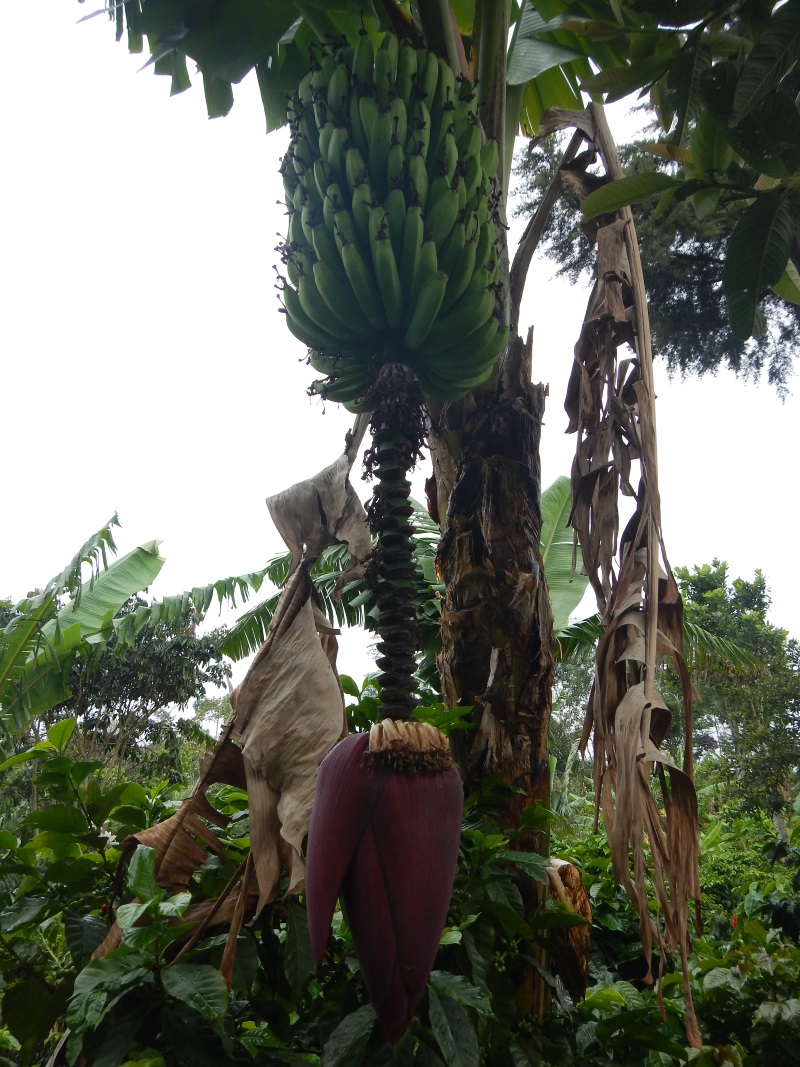 Hier haben wir auch immer wieder mitten in den Plantagen, Bananenbäume entdeckt, die zum Düngen und für den süßlichen Geschmack der Bohnen zuständig sind