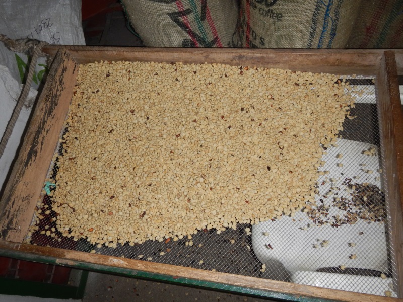 Es wird hier in verschiedene Klassen unterteilt. Die erstklassigen Bohnen werden nach Europa exportiert und die zweitklassigen bleiben in Kolumbien, deshalb bekamen wir hier auch immer den minderwertigen (und häufig Instant-) Kaffee serviert.