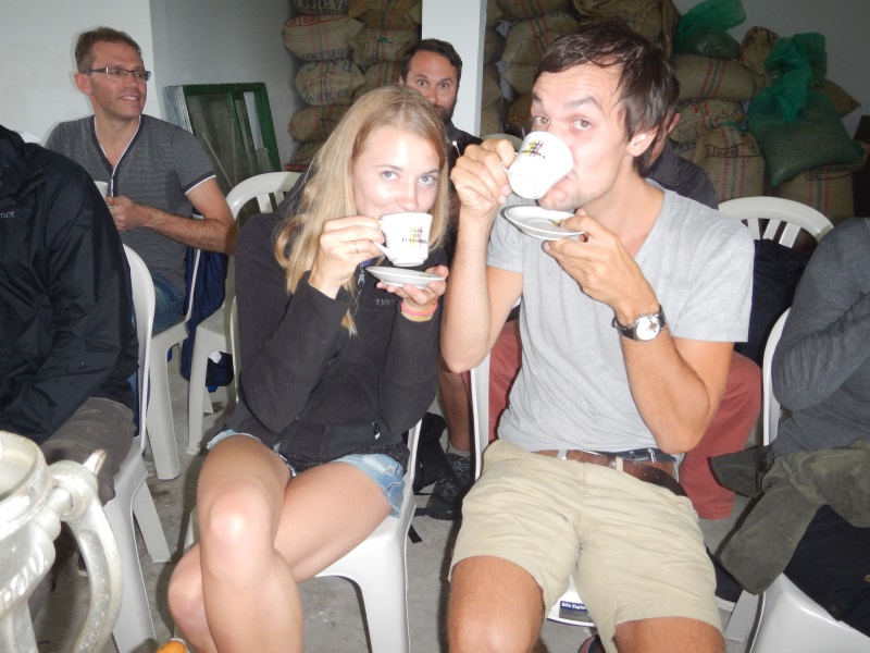 Am Ende durften wir dann einen Kaffee trinken, der komplett frisch für uns geröstet und gemahlen wurde.