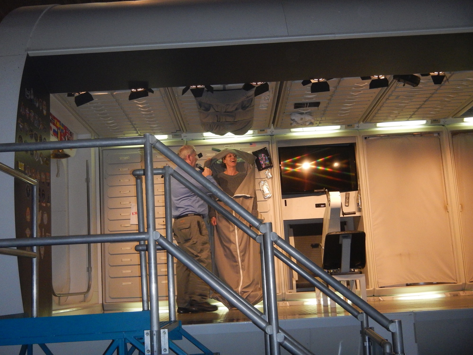 Es gab auch eine kleine Vorführung, über Alltagsprobleme in der Schwerelosigkeit (z.B. wie gehe ich eigentlich auf die Toilette, wie esse ich usw.)